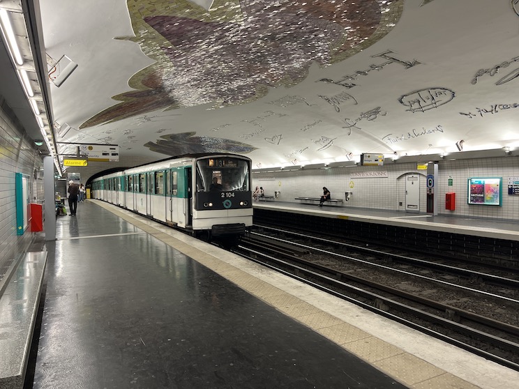 A somewhat byzantine system of paying and proving that you did was completely replaced on January 1, 2025. A new feature of Paris transportation is that what used to be a complex system of zones is now simplified: your trip costs the same no matter where you're going. You can also load all of this on your phone so you only need to wave your phone at the validation points in the metro or on the bus and then go your merry way. Get yourself the "Bonjour RATP" app for your phone, and you can follow the instructions there or check out what our friends at Reddit have built to guide you through the process of paying with your phone here. The app is also great for showing you the best (and alternative) routes to get wherever you want to go, and it will also tell you if there are problems on any of the train or bus lines. Occasionally, however, it hallucinates when giving you walking directions, so you might want to cross-check these with Google maps or some such other geomapping app. Oh, and by the way: the "Métropolitain" design you see above—and which you'll still see around town in some places—was originally created by Hector Guimard in 1900. The model you see here is hanging in the Musée d'Orsay.