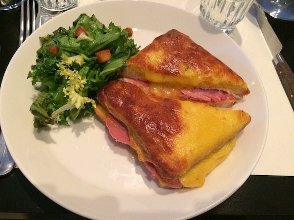 What do you order at a café? Well, what do you want? In the morning, you can get anything from an espresso (un café) or café crème (café au lait—coffee with a fair amount of milk in it) and a croissant or pain au chocolat to a full-blown American-style breakfast (although the latter, not at all common outside from the giant cafés near tourist districts, really only exists for tourists). Lunch time? Most cafés serve food, and lunches in Paris tend to be a bit bigger than in the U.S. Sandwiches and salads or heavier fare—the sorts of meals you might expect to see at dinner—aren't at all uncommon at lunch here. Try a croque monsieur (see below), a sort of grilled ham and cheese sandwich. Evening? Have an apéritif (before-dinner drink) or a glass of wine, a beer, a pastis (anise-flavored, fairly strong drink), or anything else that strikes your fancy. The café is as versatile as your tastes, and there really isn't any limit to the kind of café you might find yourself in. Some are snooty and oh so refined, while others are working class and, interestingly, just as refined.